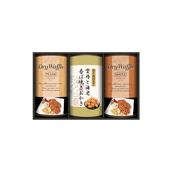 素朴な製法にこだわり、それぞれ味や食感もさまざまなおかきと、サクサク食感のドライワッフルのセットです。