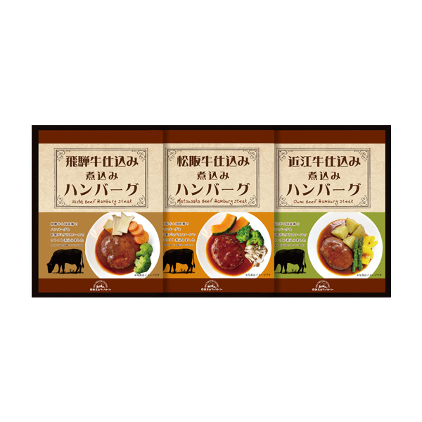 日本が誇る和牛である松阪牛・近江牛、そして岐阜県産のブランド牛として名高い飛騨牛を国産豚と合わせ、食べくらべできる贅沢なハンバーグセットにしました。それぞれの肉の旨み・良質な脂・あふれる肉汁を電子レンジ調理でお手軽にお楽しみ頂けます。