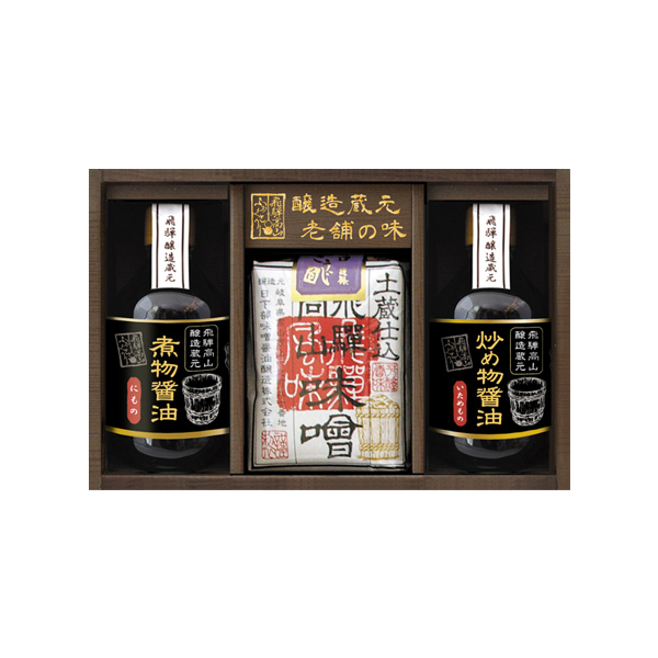 飛騨の老舗で造られたこだわりの味噌や醤油、ドレッシングなどが入った調味料ギフトです。