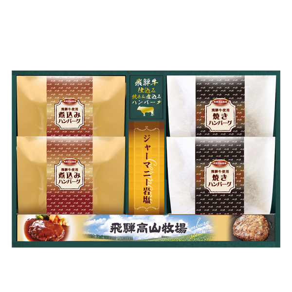 高級ブランド牛として名高い飛騨牛入のハンバーグセット。香ばしく焼き上げ、肉の旨みを閉じ込めた焼きハンバーグと、柔らかく煮込む事でコクと肉本来の味わいを凝縮させた煮込みハンバーグの2種類。本格派ハンバーグがお手軽にお召し上がり頂けます。