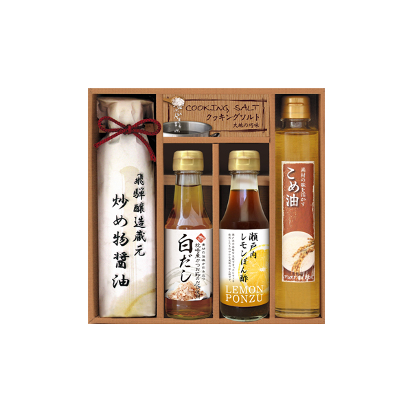 お醤油、油、ぽん酢など、毎日の食卓に欠かせない調味料。そんな基本の調味料を厳選し、こだわりぬいた調味料ギフトです。炒め物醤油は炒め物にピッタリで、これ一本で味が決まると人気のお醤油です。