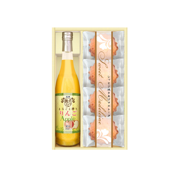 果実の味わいをいかした信州なかひら農場のフルーツ飲料と、しっとりと焼き上げたマドレーヌをセットにしたスイーツセットです。