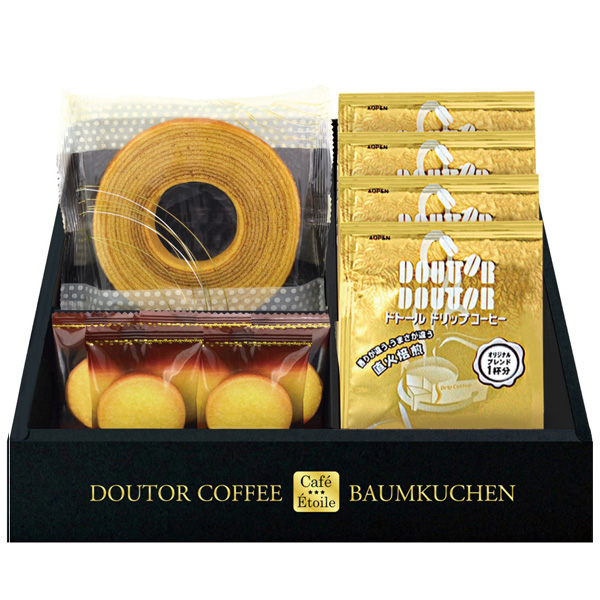 創業当時から直火焙煎にこだわるドトールのおいしさを1杯ずつパッキング。バランスのとれた味わい、豊かな香りを一緒に楽しめる逸品です。バウムクーヘンやクッキーとセットになった、老若男女幅広い方にお楽しみ頂けるギフトです。
