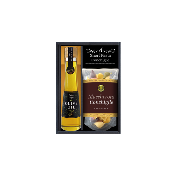 パスタやドレッシングなど幅広いお料理にお使いいただけるエクストラバージンオリーブオイルと、軽くてグリルや炒め物にぴったりな米油、彩りが鮮やかなパスタなどが入ったおしゃれなギフトです。