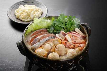 味噌仕立てのたれでいただく「石狩鍋」は北海道でお馴染みの「郷土料理」です。新鮮な旬の秋鮭に「海老」や「帆立」、「いか」に「つみれ」等を詰合せました。体の芯から温まる一品です。ご自宅の野菜も一緒に煮込んでからお召し上がりください。