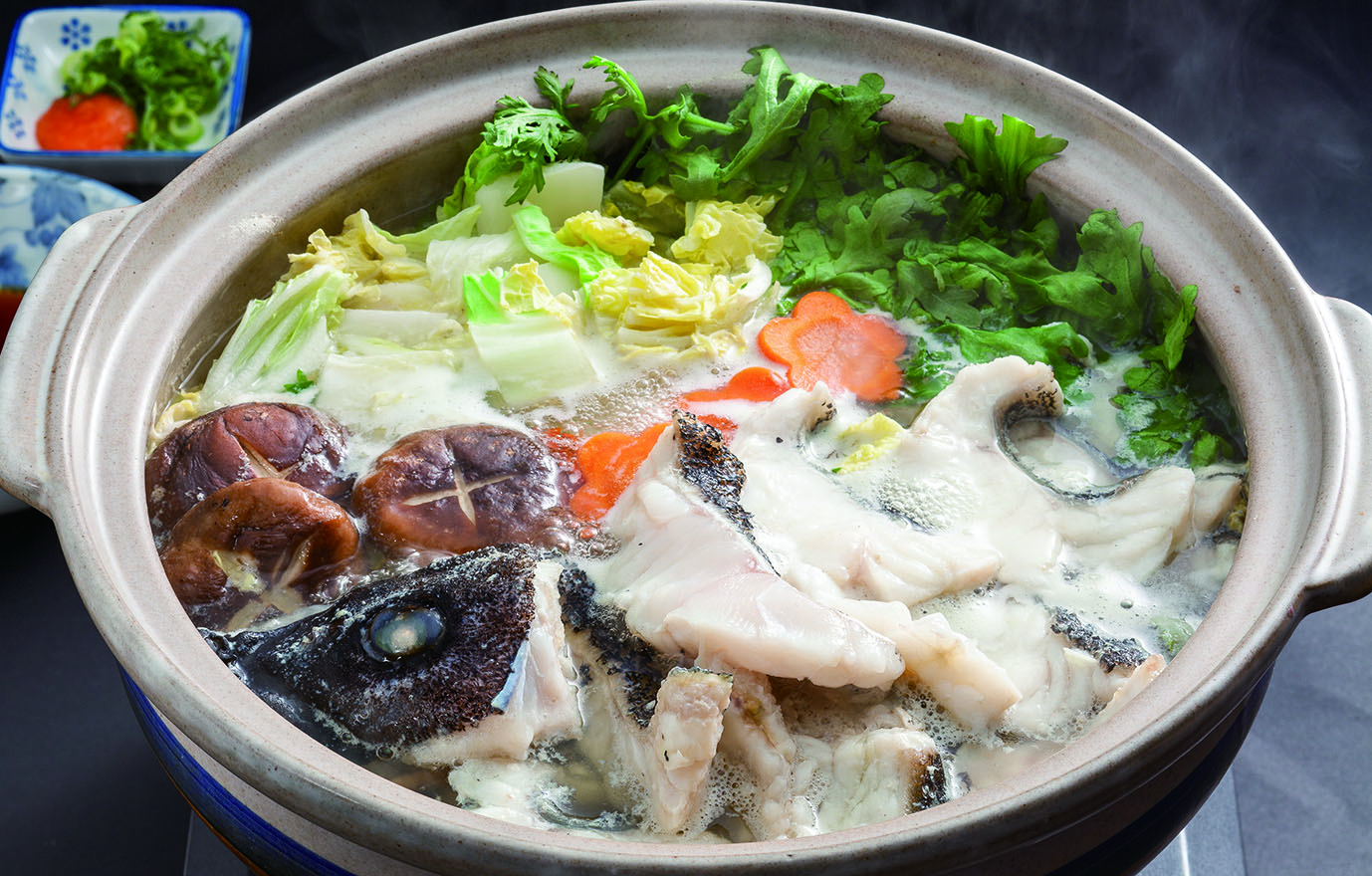 「西麻生かどや霞邸」でご提供しております。愛媛県宇和海の幻の魚「クエ」を鍋と刺身にしてお届けいたします。ご家庭で高級クエをお楽しみいただけます。