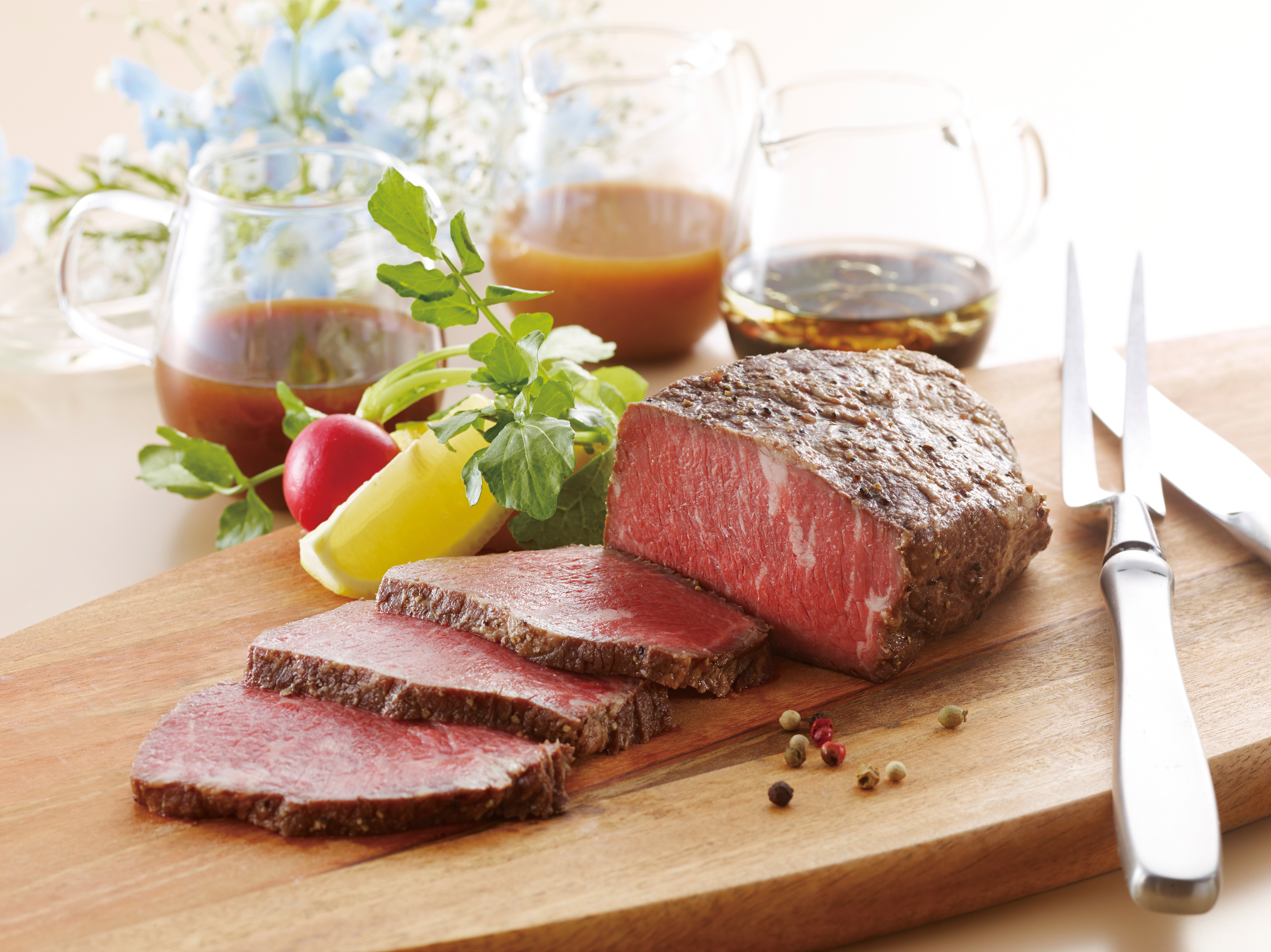 “横浜のシンボル”とも言える横浜ランドマークタワー。その中に位置する「横浜ロイヤルパークホテル」監修のローストビーフです。徹底された温度管理で肉の旨味と美味しさを“ギュッ“と閉じ込めました。それぞれ特徴のあるソースをご用意いたしましたので、パーティや、家族皆様で楽しい食事を是非お楽しみください。