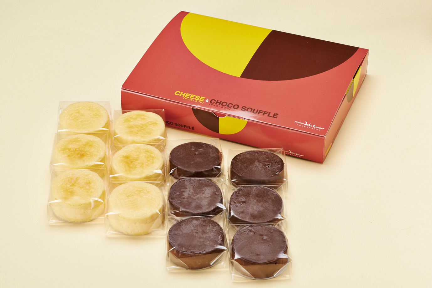 厳選されたクリームチーズを使ったチーズスフレ、最高級チョコレート2種をオリジナルブレンドしたチョコスフレをセットにしてお届けします。ふんわり&しっとりの贅沢な食感をお楽しみください。