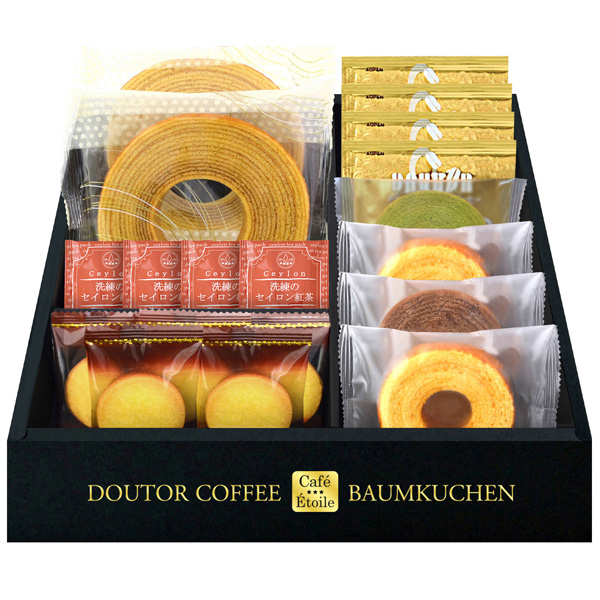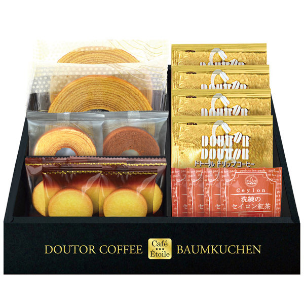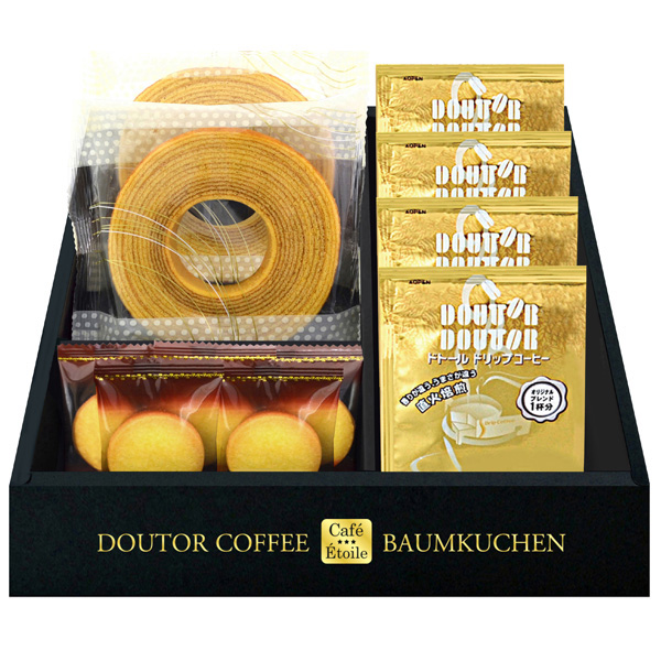 創業当時から直火焙煎にこだわるドトールのおいしさを1杯ずつパッキング。バランスのとれた味わい、豊かな香りを一緒に楽しめる逸品です。バウムクーヘンやクッキーとセットになった、老若男女幅広い方にお楽しみ頂けるギフトです。