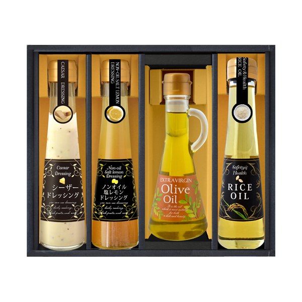 クッキングオイルの代名詞であるエクストラバージンオリーブオイルと、それぞれ個性豊かな特長を持つオリジナルドレッシングがセットになり、パスタやサラダ、幅広いお料理にお使いいただけるおしゃれなギフトです。